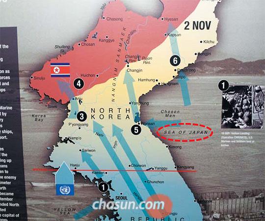 米国防総省の朝鮮戦争展示館、地図に日本海単独表記(1/1)