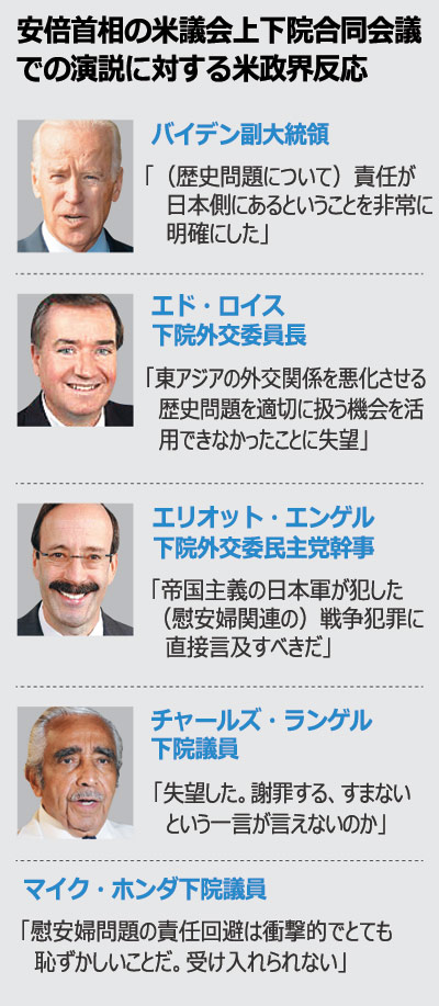 安倍訪米:謝罪なし安倍演説への反響さまざま(1/1)