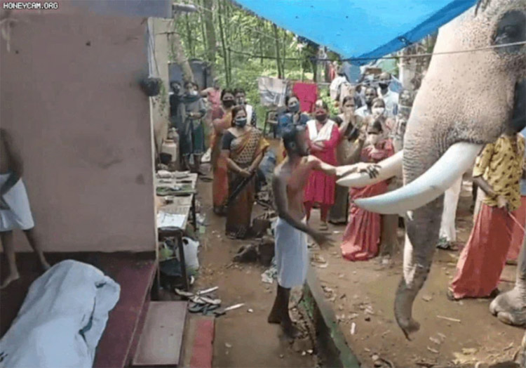 25年育ててくれた調教師の葬儀にゾウが…鼻で最後のあいさつ /インド(1/1)