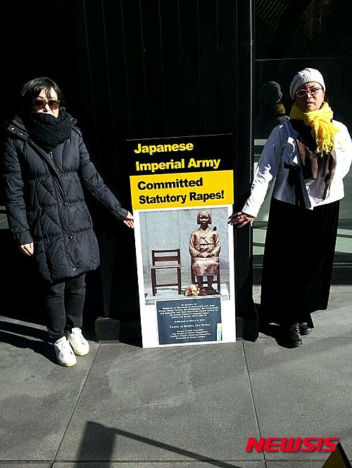 慰安婦:「未成年者を強姦」「アジアのホロコースト」=NY日本総領事館前デモ(1/2)