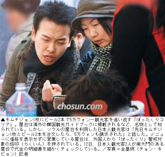 屋台で外国人相手の「ぼったくり」横行 /ソウル(1/2)