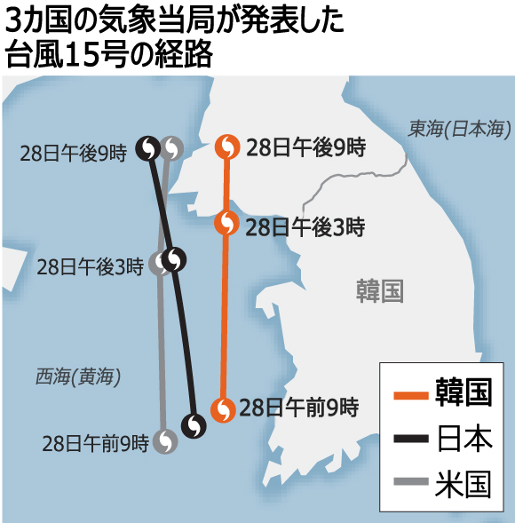 台風15号:進路図が二つ、韓国気象庁に非難殺到