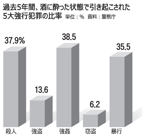 飲酒:殺人の38%、酔客による犯行(1/1)