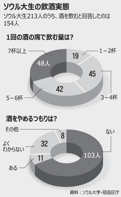 ソウル大生も暴飲、10代から飲酒も(1/1)