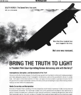 旅客船沈没:米紙にまた朴政権批判の意見広告(1/1)
