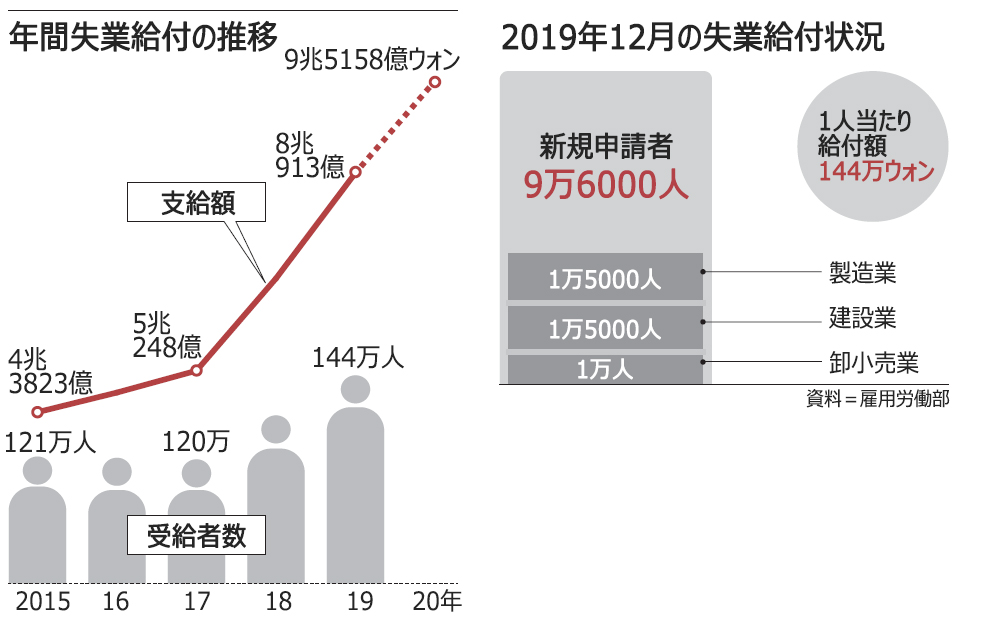 5兆→8兆ウォン、韓国の失業給付が2年間で急増(1/2)