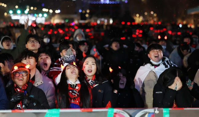 カタールW杯:「残念だけど太極戦士たちはよく戦った」 雪降る光化門広場で街頭応援(1/2)