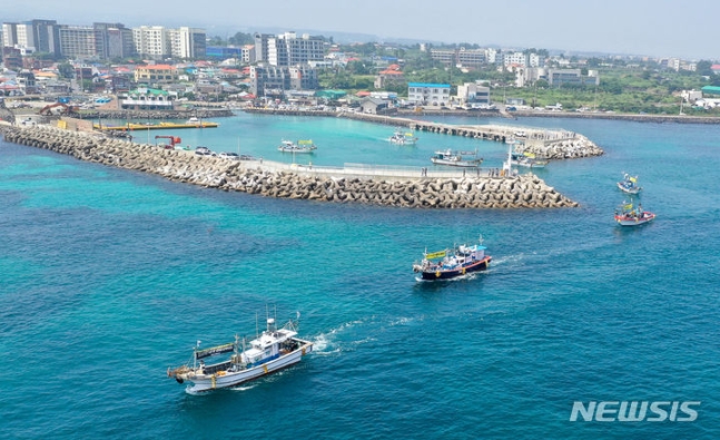済州島の海女ら、旭日旗を海に広げて福島汚染水放出反対デモ(1/1)
