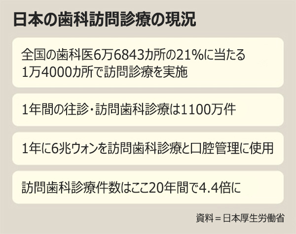 歯科訪問診療 日本は毎年1100万件、韓国は訪問診療自体がない(1/2)