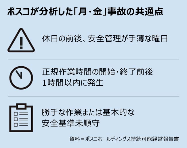韓国建設大手ポスコの労災事故、8割は月・金に集中していた(1/2)