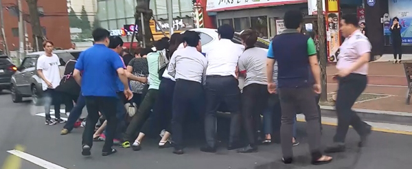 車の下敷きになった女子高生、市民らが車持ち上げ救助(1/1)