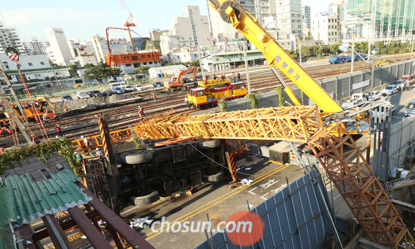 線路上に大型クレーン転倒、帰宅の足に影響 /仁川(1/1)