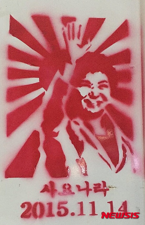 「サヨナラ」 ソウルの繁華街に朴大統領風刺壁画(1/1)