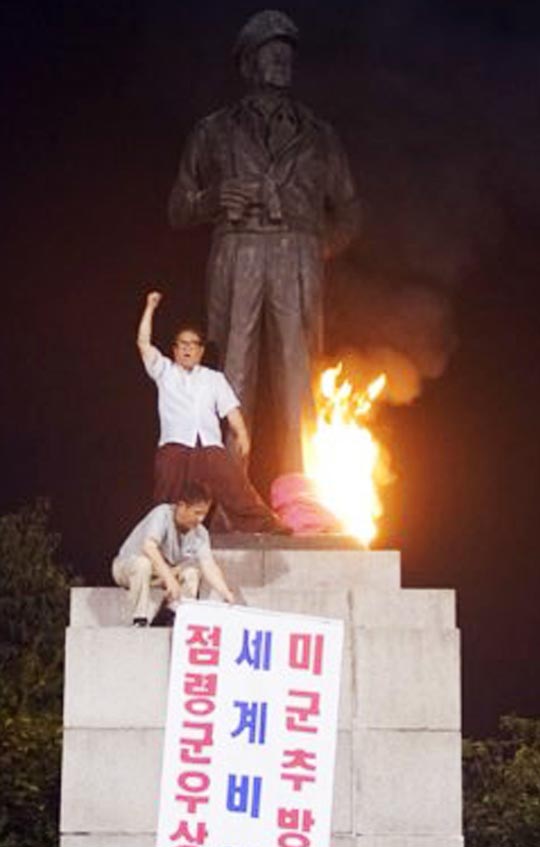 韓国左派団体メンバーら、マッカーサー像に放火 /仁川(1/1)