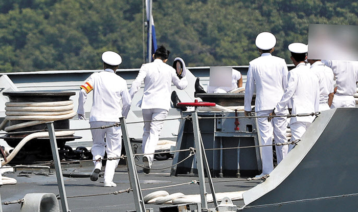 韓国駆逐艦歓迎式で固定用ロープが切れ22歳兵長死亡・4人負傷 /鎮海(1/1)