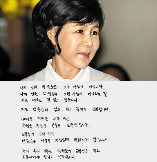 朴元淳前ソウル市長夫人「夫はそのような人ではない」…被害者側「事実の歪曲、2次加害招く」(1/1)