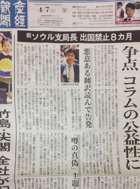 産経前支局長、「うわさは虚偽」地裁判断に異議なし(1/1)