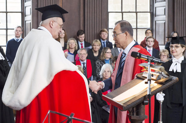 英ケンブリッジ大、潘事務総長に法学名誉博士学位を授与(1/1)