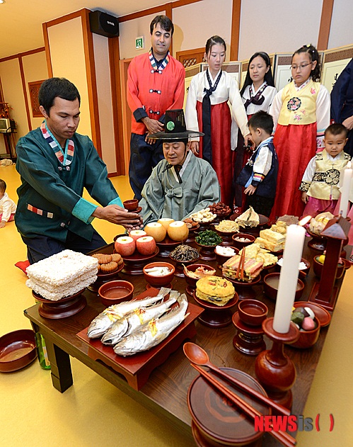 国際結婚の家族が「茶礼床」を体験(1/6)