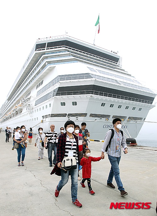 MERS:クルーズ客船済州到着、マスク姿の中国人観光客(1/8)