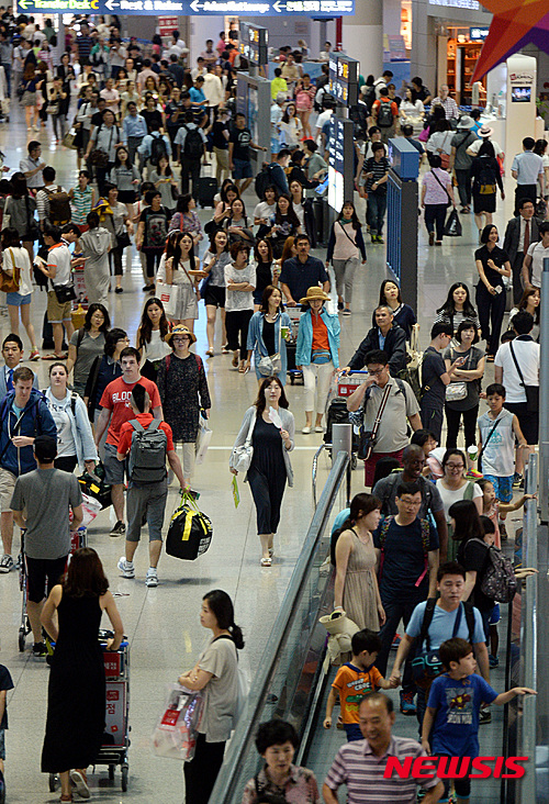 旅行客で混雑する仁川空港(1/11)