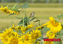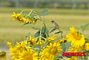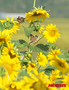 ヒマワリ畑で休息するスズメ(1/6)