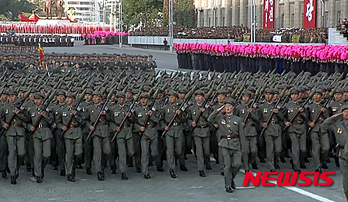 平壌で軍事パレード=朝鮮労働党70周年(1/18)