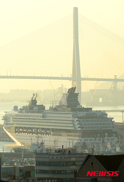 釜山港新国際旅客ターミナルに客船初入港(1/4)