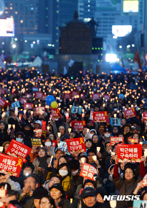 朴・前大統領の身柄拘束を求める「ろうそく集会」(1/12)