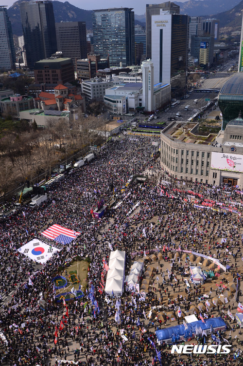 朴・前大統領の逮捕を糾弾する保守系の太極旗集会(1/9)