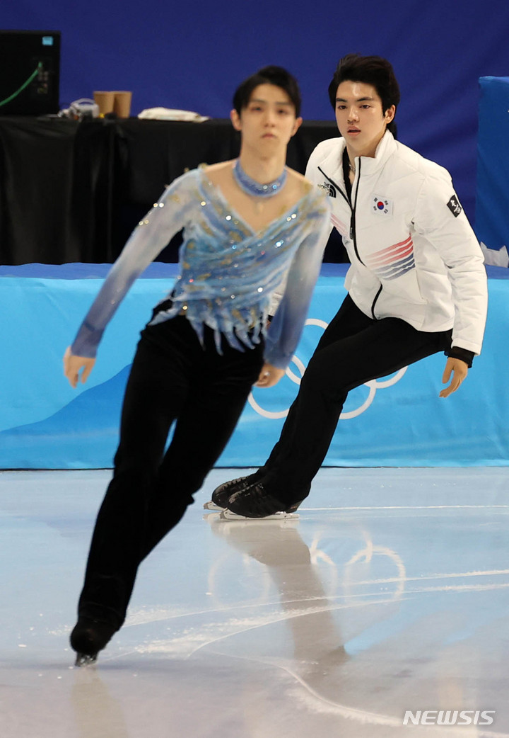 練習に臨むフィギュア車俊煥と羽生結弦(1/7)