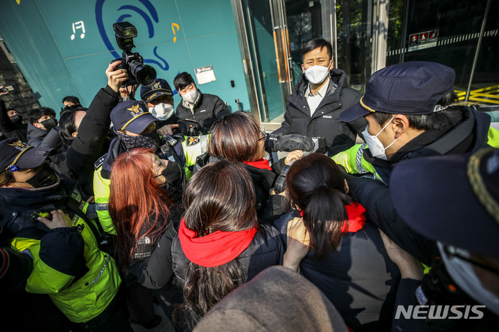 市庁侵入を試みる梨泰院雑踏事故犠牲者の遺族たち(1/17)