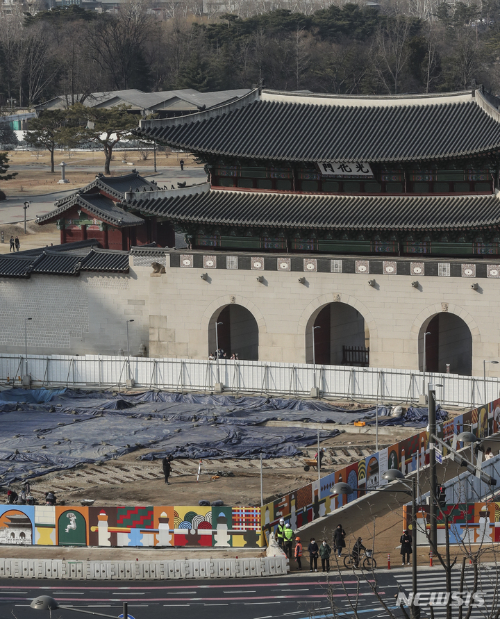 光化門前で見つかった日帝強占期の路面電車の線路跡(1/9)