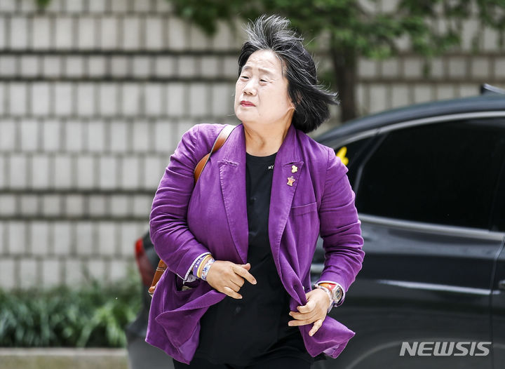 「正義記憶連帯後援金横領」関連の裁判に出席する尹美香議員(1/8)
