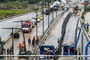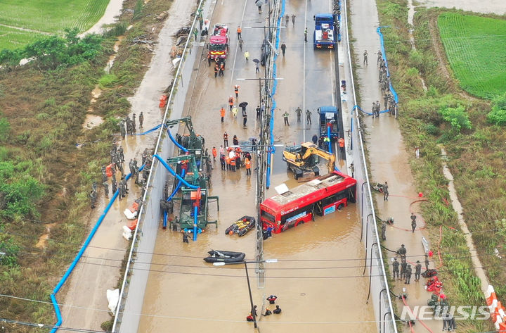 韓国豪雨:水没した地下道で行方不明者の捜索活動 /忠清北道(1/24)