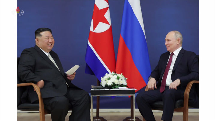 ロシアの宇宙基地でプーチン大統領と会談する金正恩総書記(1/15)