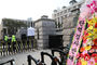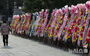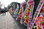 憲法裁判所前に並んだ弾劾賛成派・反対派の花輪(1/8)