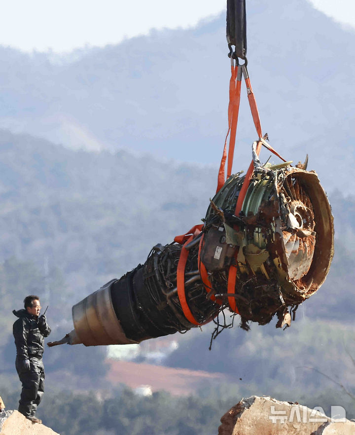 旅客機のエンジンを持ち上げる作業実施(1/11)