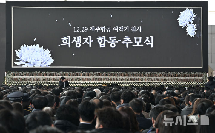 チェジュ航空旅客機事故合同追悼式典が開かれた務安空港(1/21)