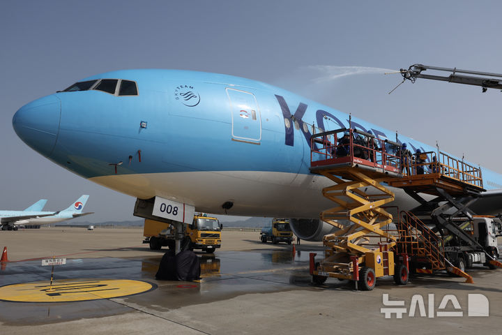 大韓航空、春に合わせて航空機の胴体洗浄を実施(1/10)