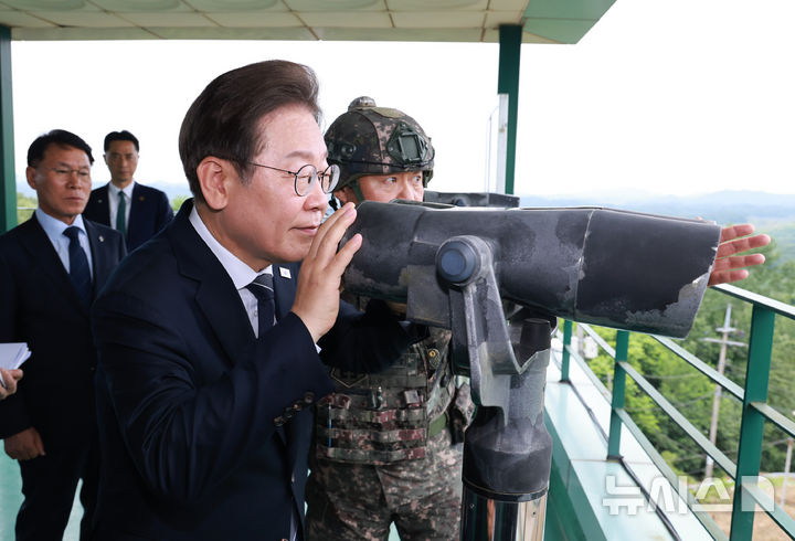 北朝鮮側をじっと見る李在明大統領(1/10)