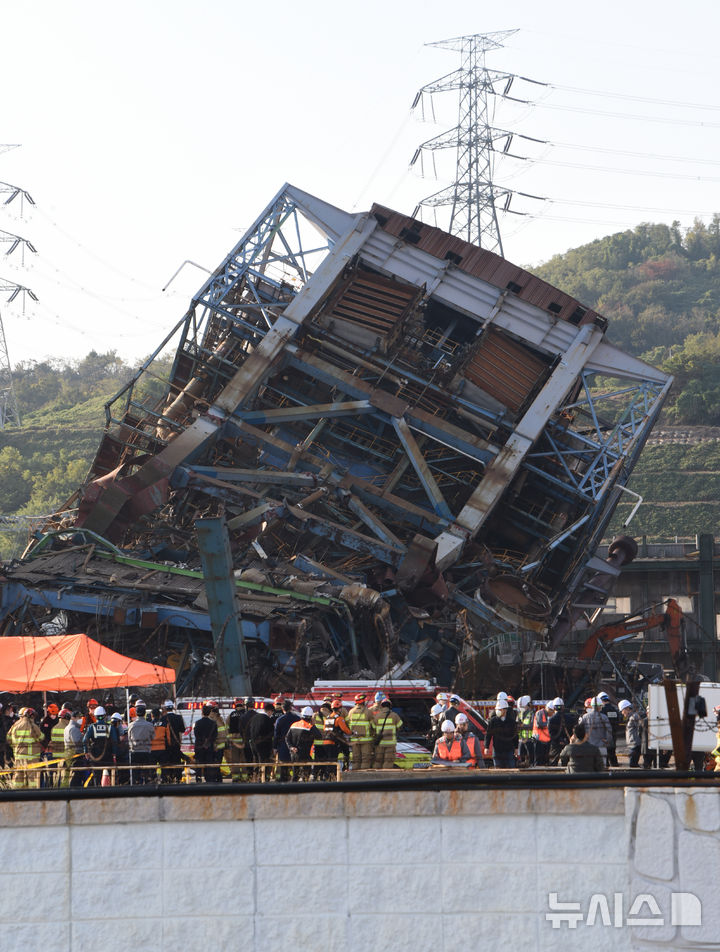 韓国東西発電蔚山火力発電所の大型構造物が崩壊(1/12)