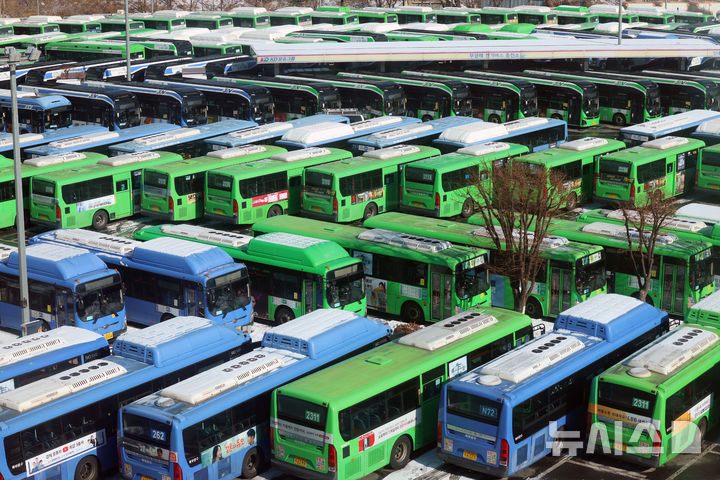 運行を止めたバスでいっぱいの車庫(1/10)