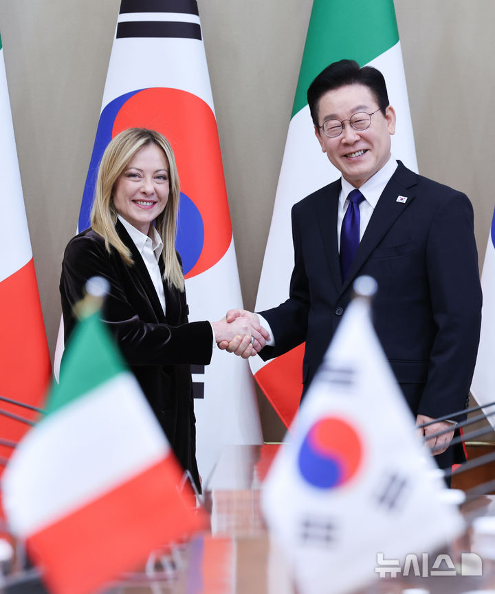 韓国大統領、イタリア首相と首脳会談で握手(1/12)
