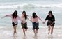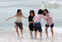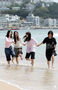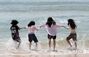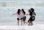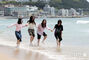 全国的に初夏の陽気…海雲台ビーチの波打ち際で遊ぶ人々 /釜山(1/7)