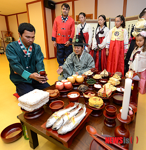 国際結婚の家族が「茶礼床」を体験(5/6)