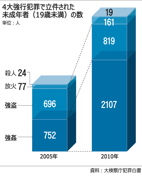 未成年者の凶悪犯罪、5年間で2倍以上に(2/2)