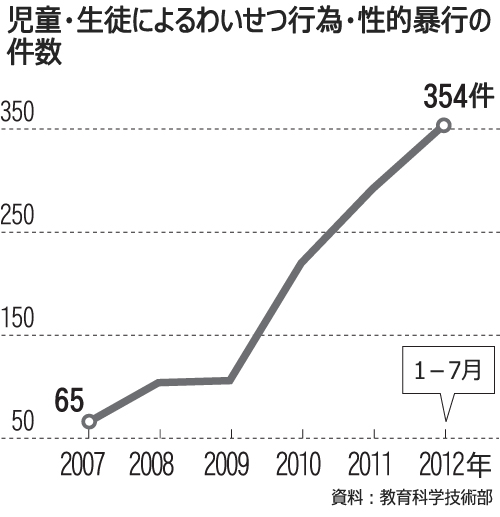 小・中・高校生の性犯罪、6年間で9倍に(2/2)