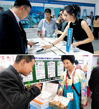 スマホを展示する韓国館の隣でたばこを売る北朝鮮(2/2)