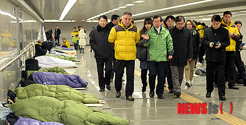 ホームレスの越冬対策を視察するソウル市長(2/8)